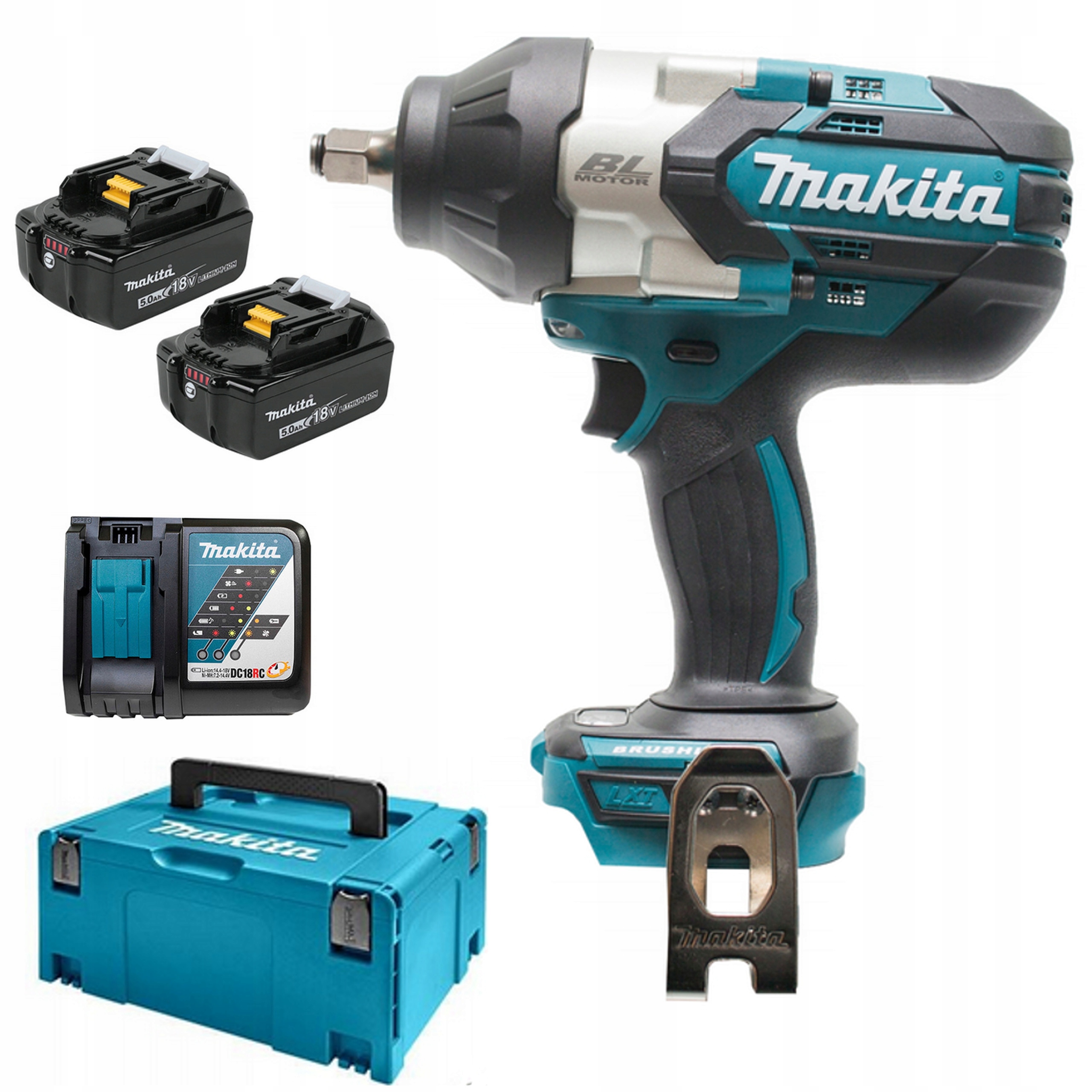 - 2x LXT 18V Акумулятор ємністю 5,0 А·год з індикатором заряду BL1850B