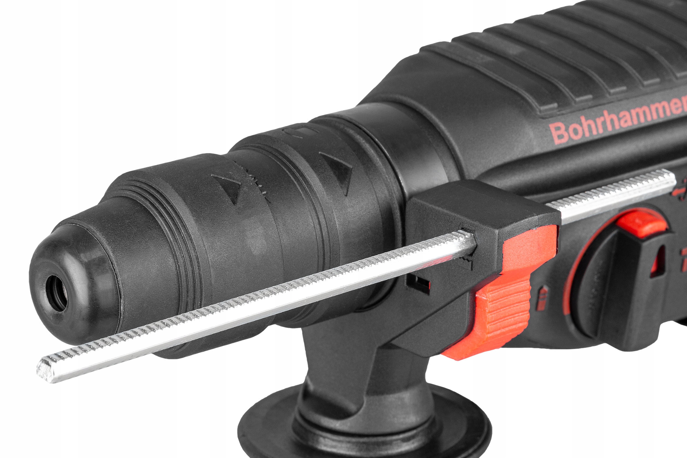 Ударний дриль також має потенціометричний регулятор швидкості, розташований у перемикачі, перемикач повороту вліво/вправо та свердлильний патрон SDS+.