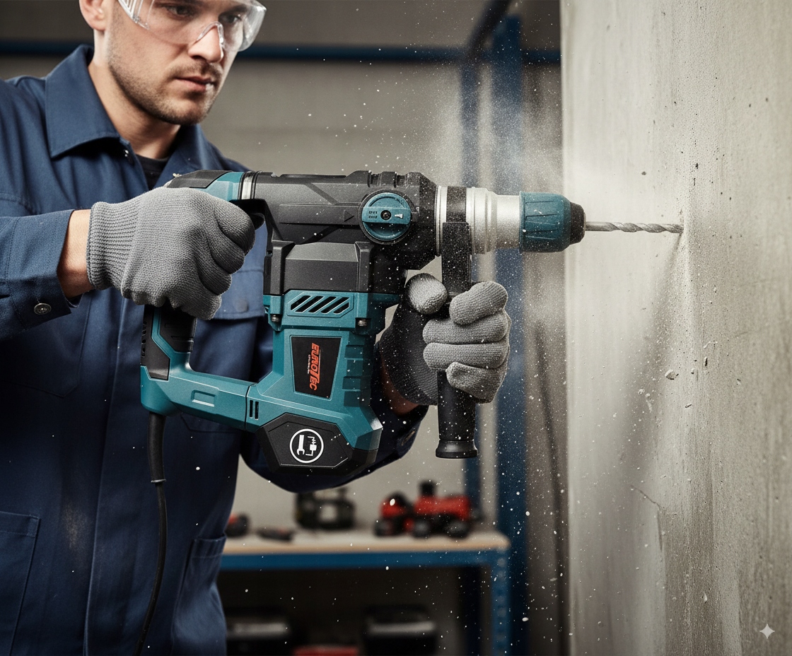 Професійний ударний дриль EUROTEC — це інструмент, який добре працюватиме в будь-якій майстерні та на будівельному майданчику. Завдяки високій потужності 2800 Вт, пневматичному ударнику та системі SDS+ ви можете впоратися навіть з найтвердішими матеріалами - від цегли та каменю до залізобетону.