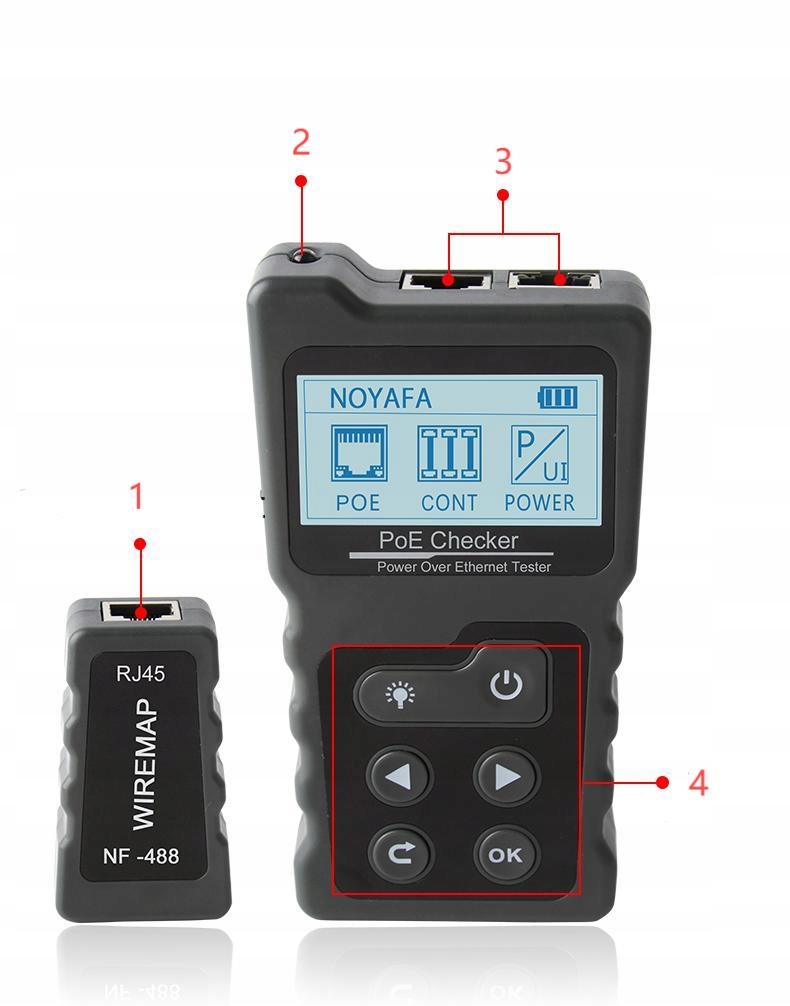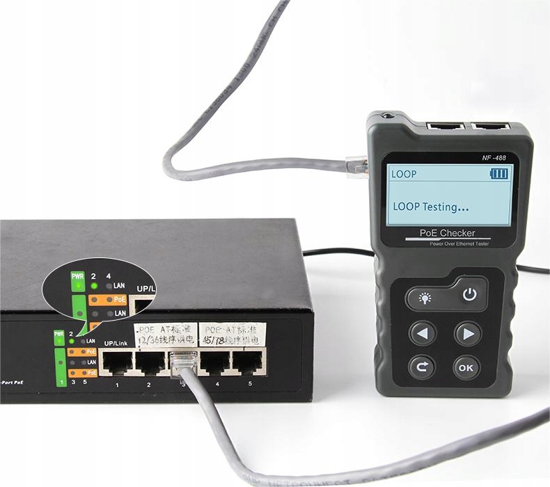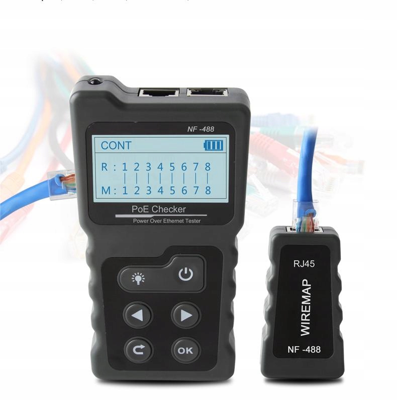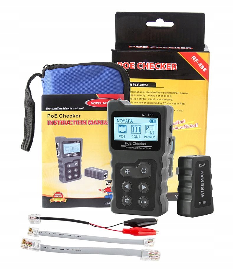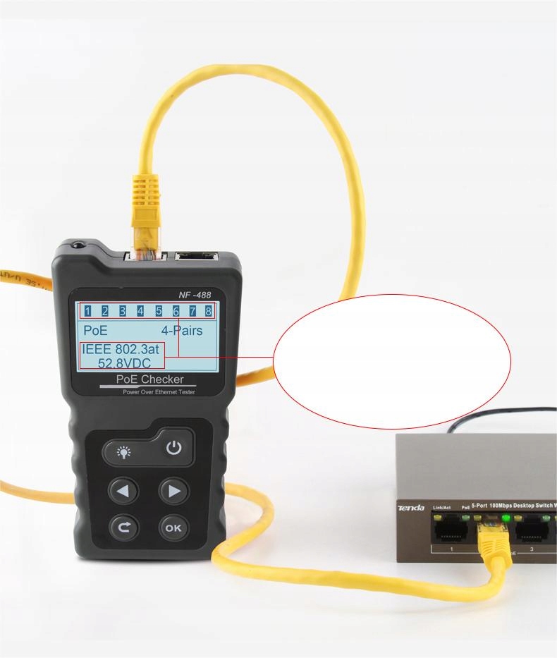 NOYAFA NF-488 Power over Ethernet (PoE). Визначити стандарт at/af/voltage/current/power/continuity/loopback