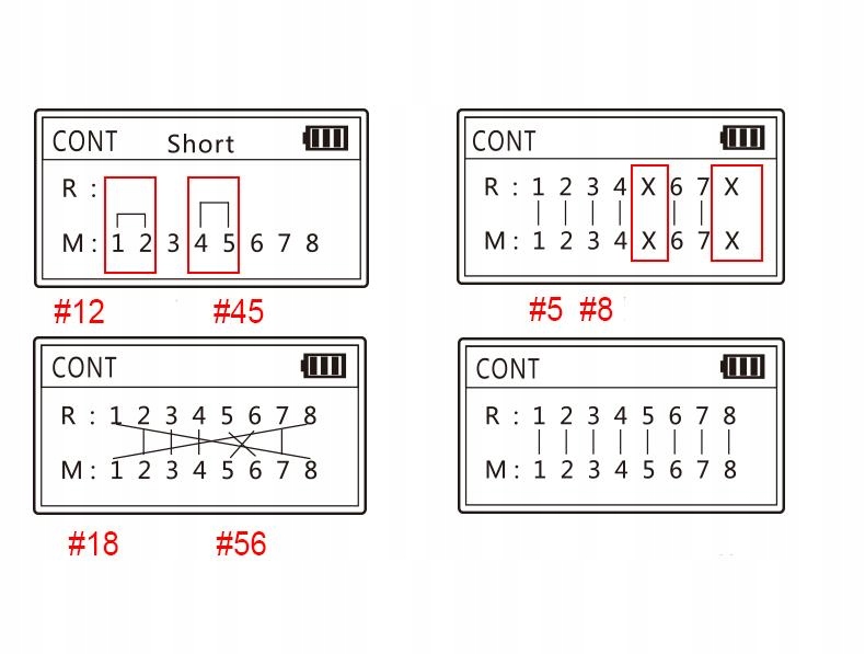 - Тестування безперервності кабелю — перевірка статус короткого замикання, перехресного та розриву для кабелю LAN STP та UTP.