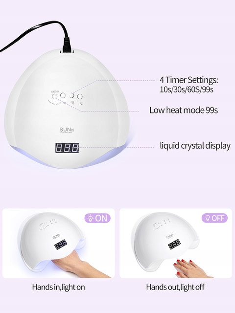 2. Зручна розумна машина для нігтів. Функція автоматичного зондування виявляє, коли ви кладете руку всередину, автоматично активуючи процес сушіння. З 4 налаштуваннями таймера (10s/30s/60s/99s), ви маєте повний контроль над часом сушіння, що дозволяє вам щоразу досягати ідеальних результатів.