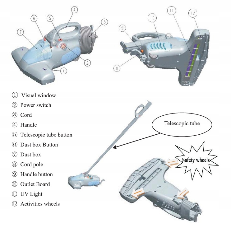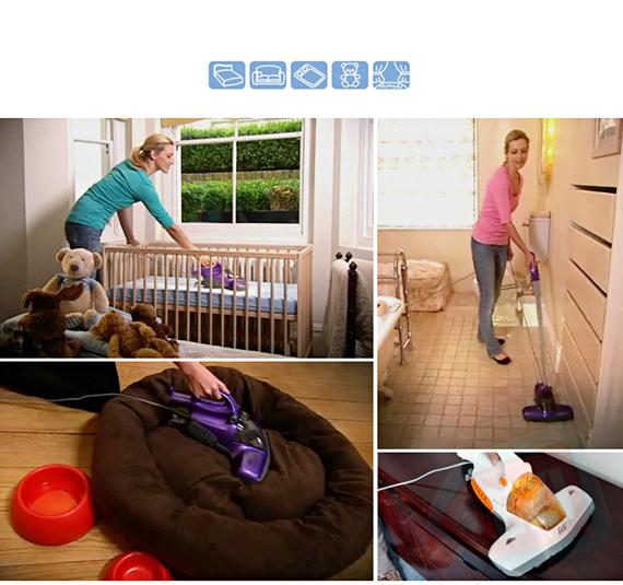 Цей пристрій розроблено для пилососіння та дезінфекції подушок, диванів, штор, постільної білизни, ліжок для собак і котів, килимів, килимів, дерев’яних виробів. підлоги, плитки тощо