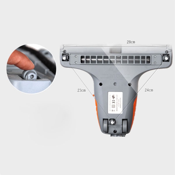 Запобіжний вимикач, розташований під колесами, швидко вимикає пилосос, коли його піднімають з поверхні, що підлягає роботі. очищений.