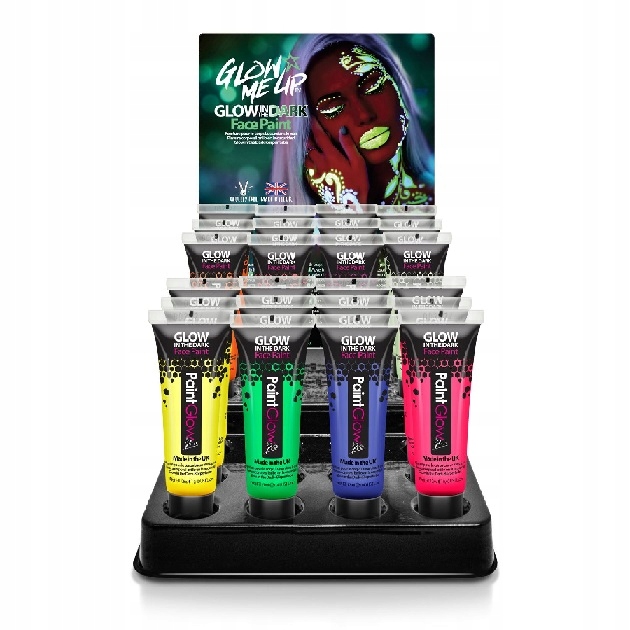 MoonGlow UV Neon Face Paint – це фарби, які світяться в ультрафіолеті. Ними можна малювати на тілі та обличчі. Фарби упаковані в туби по 12 мл. Наносити фарби слід на чисту знежирену шкіру. Чудово підходить для днів народжень та інших веселих подій. Вони дуже легко змиваються водою з милом. MoonGlow має сертифікат ISO 9001:2008, що означає, що вся косметична продукція Moonglow сертифікована за найвищими стандартами. Зверніть увагу, що це косметичний продукт, покриття та ефективність підлягають індивідуальній оцінці клієнта.