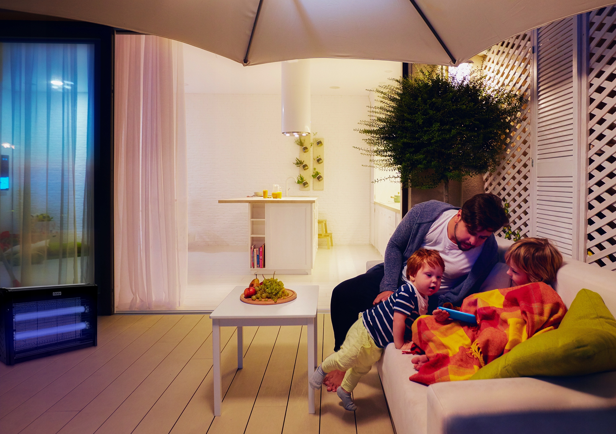 УФ-А лампи, встановлені всередині пристрою, випромінюють ультрафіолетові промені типу А зі спектром 365 нм, які невидимі для людського ока, але привертають увагу комах, включаючи комарів, мух і міль. Це дозволяє ефективно залучати комах, а потім ефективно знищувати їх під високою напругою.