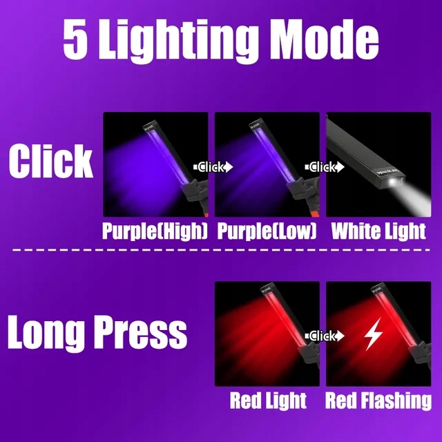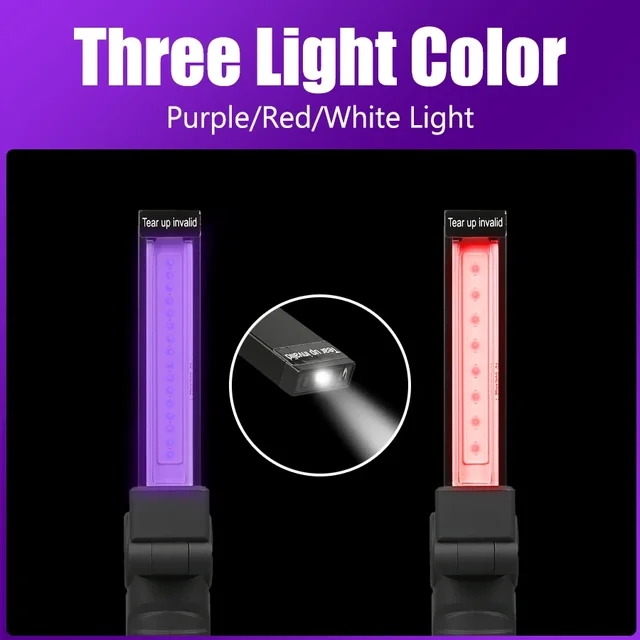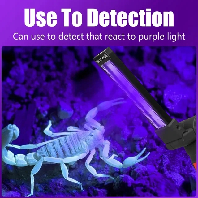 【395 нм УФ-ліхтарик】 УФ-ліхтарик легко знаходить внутрішні плями. Він може виявити гриби в продуктах харчування та перевіряти рахунки та банкнотетів підробки. Ви можете носити його з собою, щоб виявити плями у своєму автомобілі або ілюмінемічних мінералах, прикрасити своє тіло і знайти скорпіонів.