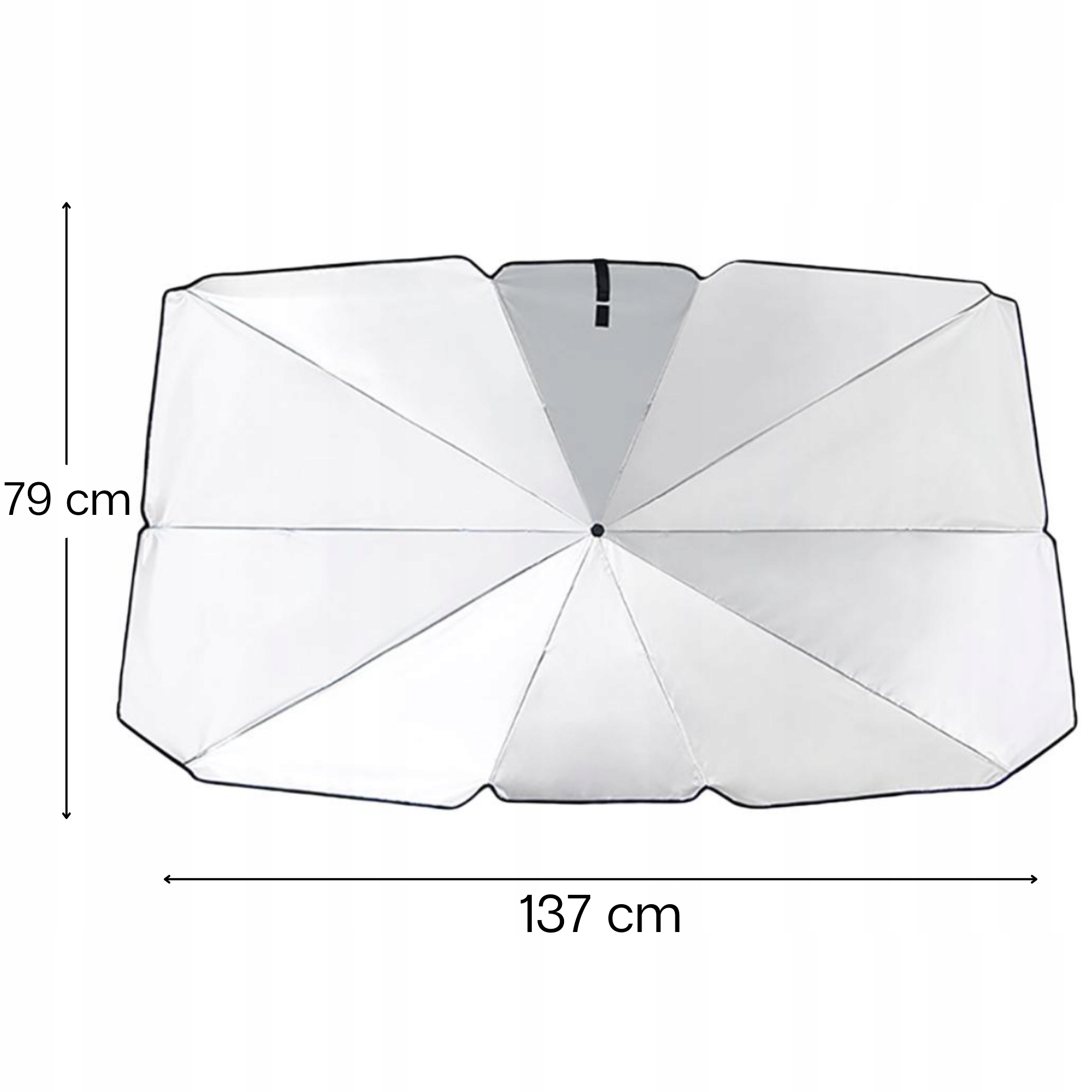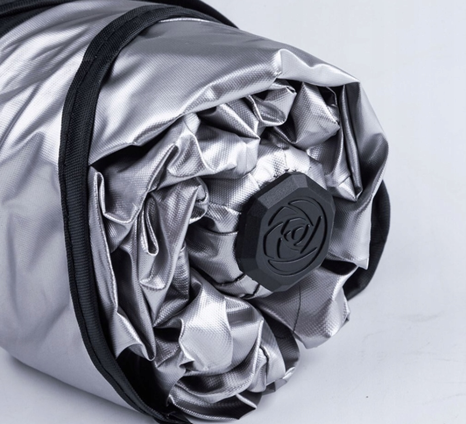 Килимок складається з 10 сталевих ребер, які складаються та розгортаються, як парасолька. У складеному вигляді не займе багато місця в машині. У розкладеному стані він захистить ваш автомобіль від надмірного нагрівання всередині.