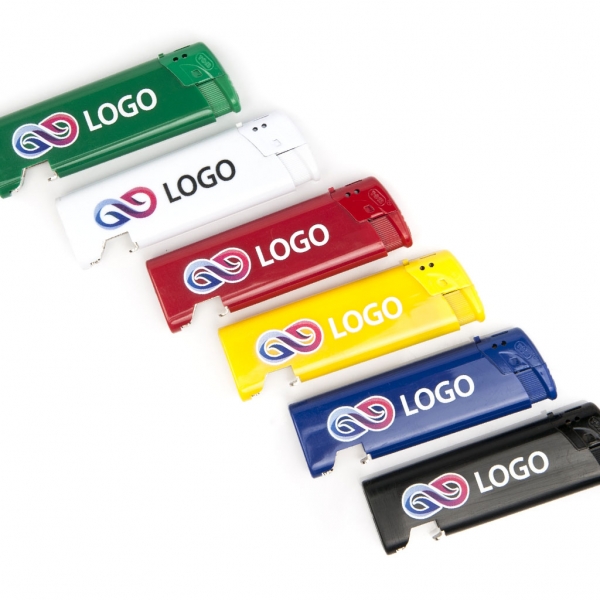 Модель цієї запальнички виготовлена з міцного пластику. Хорошу якість цього продукту також забезпечує п'єзоелектричний розпал і клапан, що дозволяє заправляти запальничку самостійно. Також користувачів порадує відкривачка, розташована в корпусі. Пам’ятаючи про безпеку дітей, ми надаємо нашим клієнтам запальнички, оснащені силовим захистом відповідно до EN ISO 9994:2006 (безпека продукції), EN 13869:2002 (захист від дітей).