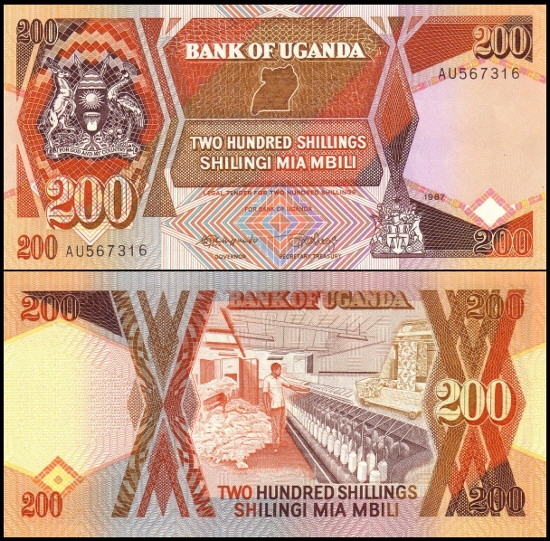 UGANDA, 200 SHILLINGS / SHILINGI 1987 Pick 32a