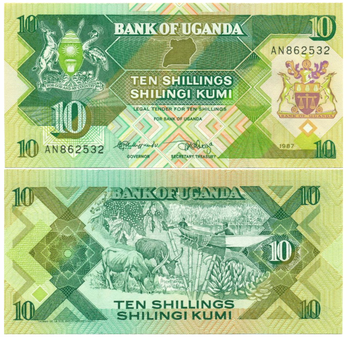 УГАНДА 10 ШИЛІНГІВ 1987 P-28 UNC,