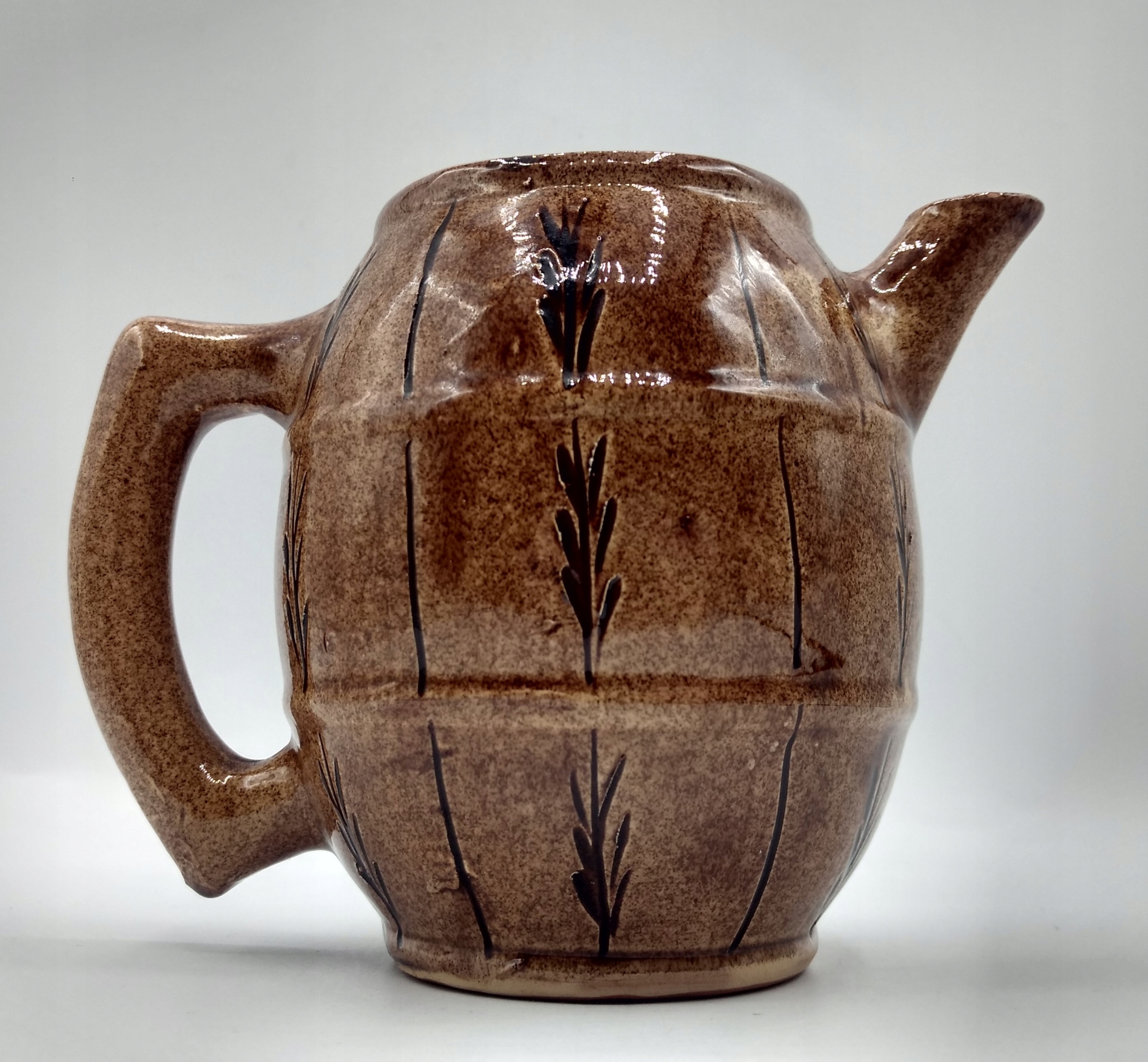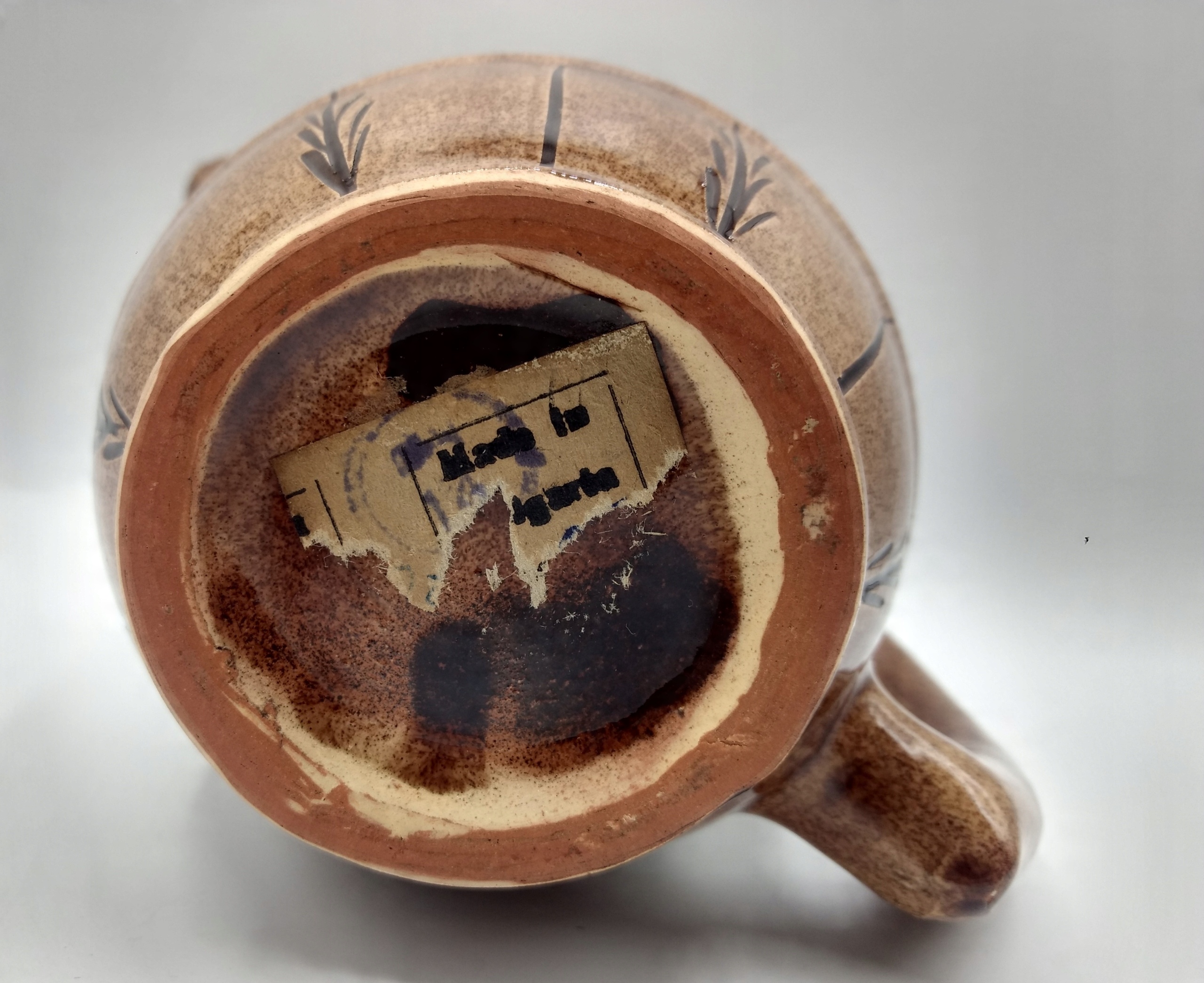 Виготовлено з кераміка. Розміри глечика: висота 12 см / ширина з носиком і ручкою 16 см, діаметр бочки 10 см, ємність 600 мл, склянка 50 мл, вага всього понад 750 г. Набір виглядає так само красиво в житті, як і на фото. Без прихованих дефектів, ідеальний колекційний стан.