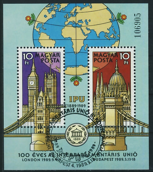 Угорщина 1989 блок 100-річчя IPU - набір 11