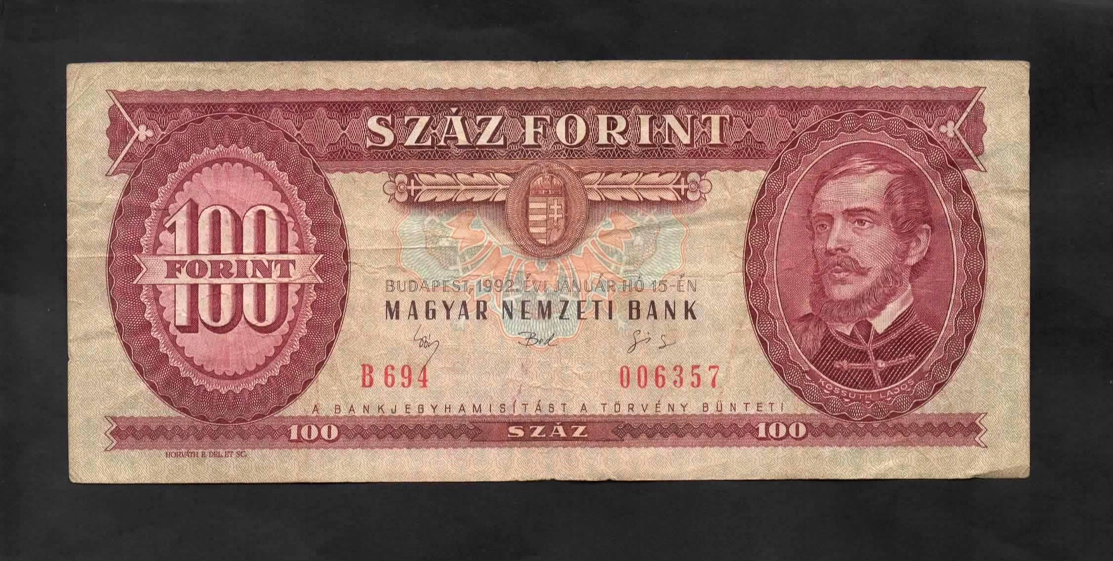 Угорська банкнота - 100 фортів - 1992