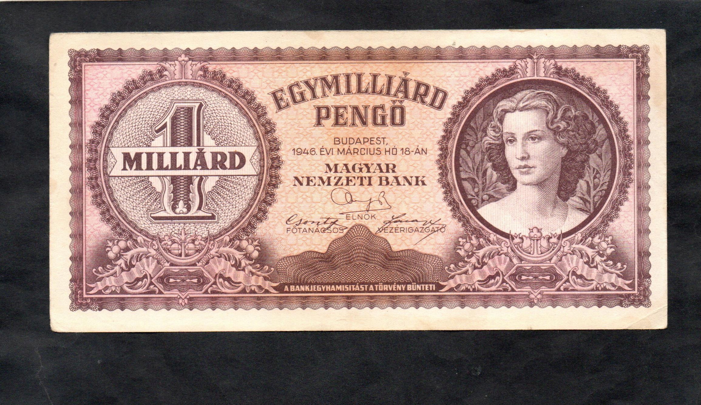 УГОРСЬКА БАНКНОТА – 1 мільярд пенго – 1946 рік