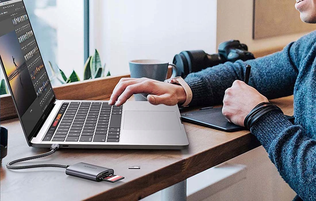 Якщо вам потрібна найвища можлива швидкість передачі даних, пристрій для читання карт USB-C стане ідеальним рішенням для вас. Невеликі розміри виробу не займуть багато місця в рюкзаку або сумці для ноутбука. Завдяки опції plug and play вам не потрібно встановлювати додаткові драйвери на комп'ютер. Усе, що вам потрібно зробити, це підключити пристрій до відповідного роз’єму та вибрати файли, які ви хочете прочитати.