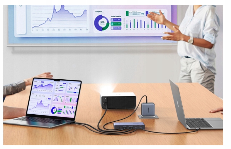 - UGREEN CM731 - це розширений комутатор KVM (клавіатура, відео, миша - клавіатура, монітор та миша), який дозволяє підключити два комп’ютери до одного монітора та загальний набір USB -пристроїв (універсальна серійна шина, універсальний роз'єм для даних та передачі живлення). Завдяки цьому ви можете, наприклад, швидко переключити між ноутбуком та ПК (персональний комп'ютер) без необхідності повторного з'єднання кабелів. Пристрій дозволяє використовувати одну клавіатуру, мишу, принтер, маятник або камеру для двох робочих станцій, що забезпечує зручність, порядок та заощадження місця в будь -якому робочому середовищі.