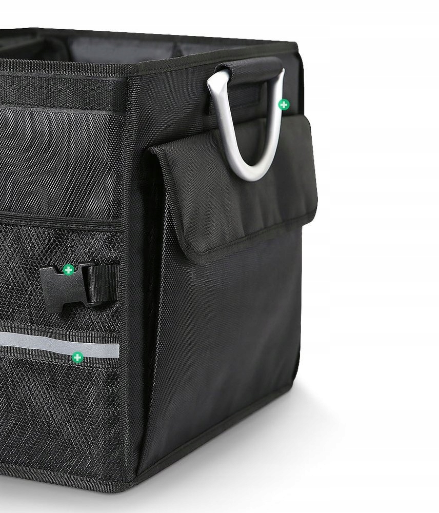 Многофункціональна сумка призначена для транспортування та зберігання речей. Його місце розташування - в багажнику автомобіля, де тепер він може зберігатися в ідеальному порядку! Під час проміжної зупинки або пікніка органайзер можна взяти на вулицю. Це ідеальний гаджет для упаковки речей, які можуть загубитися або забруднитися на сидінні. Ковдра, брудне взуття, змінний одяг, спортивні аксесуари, пляшки вина, аптечка, а також ящик для інструментів і насос - це та багато іншого можна транспортувати безпечно і стабільно - вони не змінять свого положення навіть у у разі раптового гальмування.