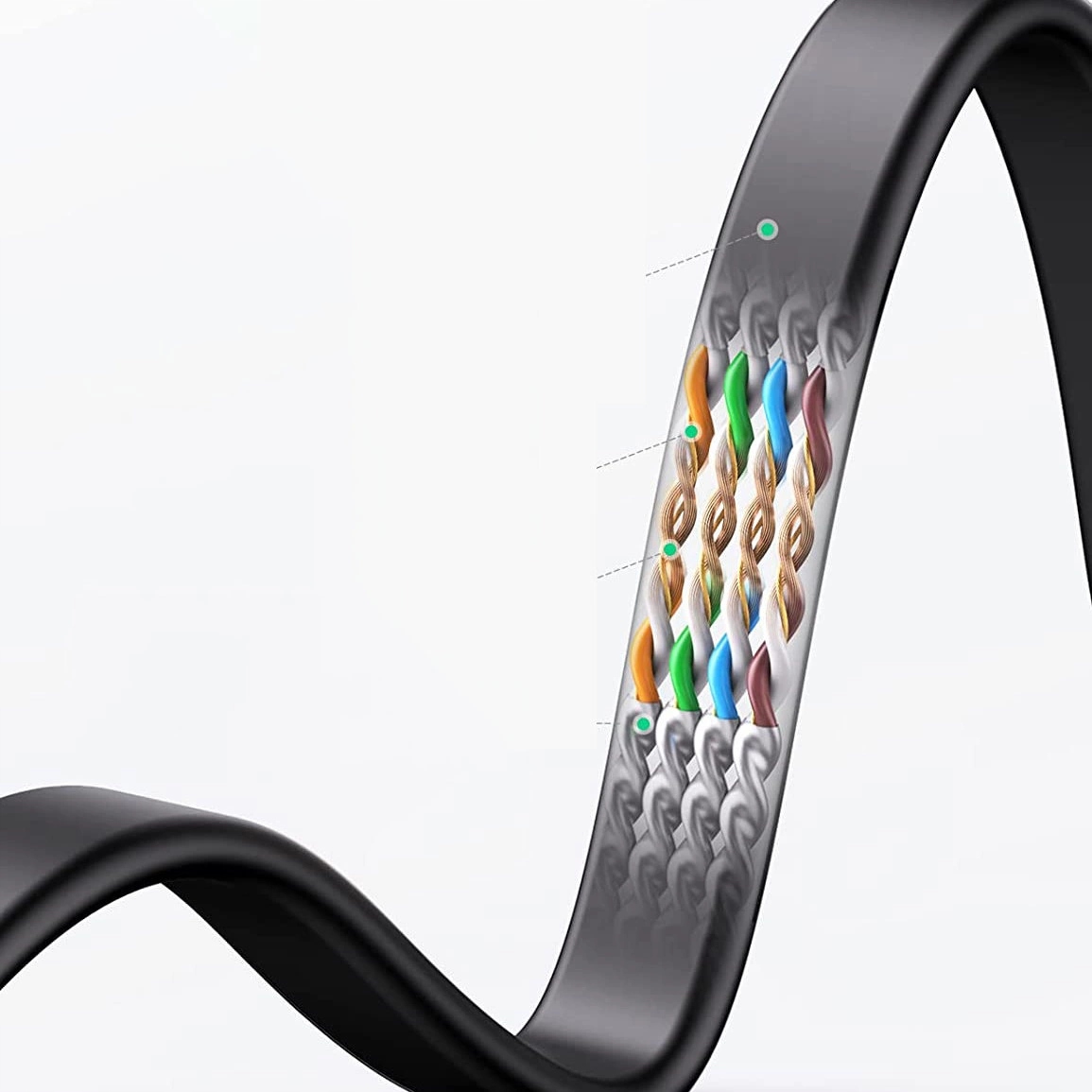 Якість сигналу має вирішальне значення для стабільного підключення до Інтернету. Кабель Ugreen NW102 гарантує стабільний сигнал завдяки крученим парам проводів, які протидіють зовнішнім електромагнітним перешкодам. Низький опір і сім струмопровідних жил у кожній парі забезпечують мінімальні втрати сигналу, що забезпечує надійну передачу даних. Крім того, перехресна ізоляція та мідний сердечник захищають від втрати сигналу, що має вирішальне значення на великих відстанях.