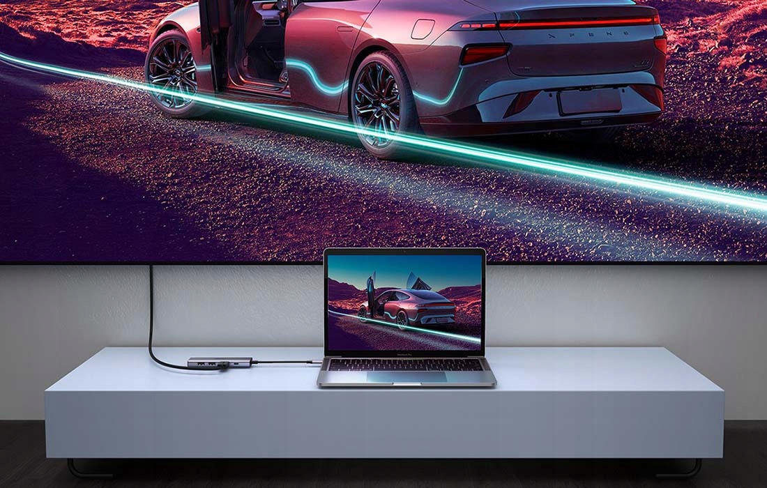Пристрій має 6 портів: 2x USB, HDMI, USB-C і порт для карти TF/SD . Зображення дивовижної якості 4K, швидке заряджання PD 100 Вт і блискавичне передавання файлів 5 Гбіт/с. Компактні розміри пристрою дозволять брати його з собою всюди.