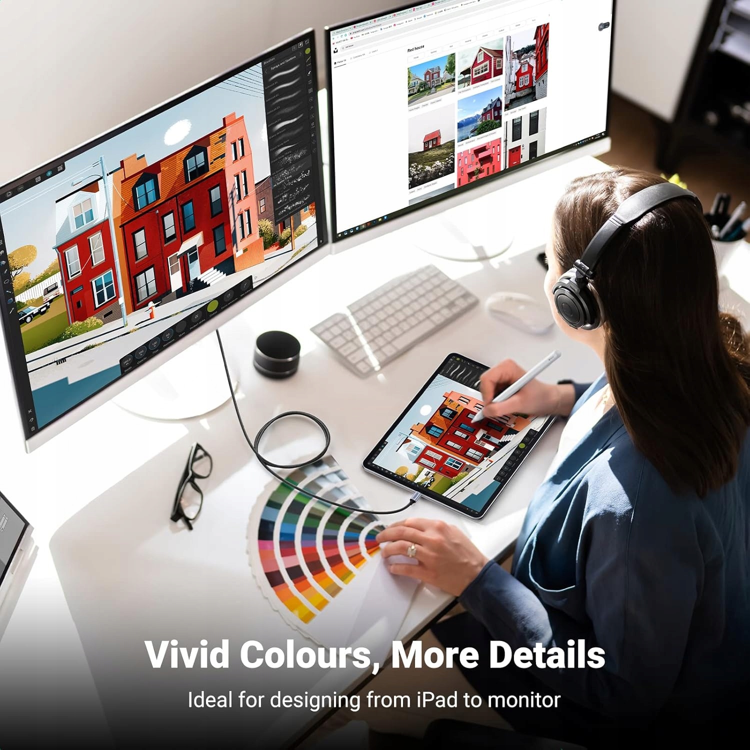 4K@60 Гц UHD HDMI Кабель: USB C на HDMI підтримує роздільну здатність відео до 3840 × 2160@60 Гц (4K × 2K) та Full HD 1080p@60 Гц. Він також підтримує Netflix, Prime Video, Hulu, YouTube, Skysports та всі інші відеофайли з HDCP2.2. 4 Нікельні роз'єми нержавіючі та більш довговічні з тисячами кабелю, що з'єднується та відключається. 4 Постійний алюмінієвий корпус не тільки виглядає приємно, але забезпечує гарне розсіювання тепла.