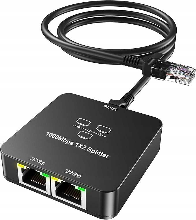 Uhddadi Ethernet Splitter 1 to 2 Out, високошвидкісні мережеві комутатори 1000 Мбіт/с з кабелем Ethernet Cat 6, спліттер RJ45, роз’єм Gigabit Internet Splitter для кабелю Cat 5/5e/6/7/8, чорний b>