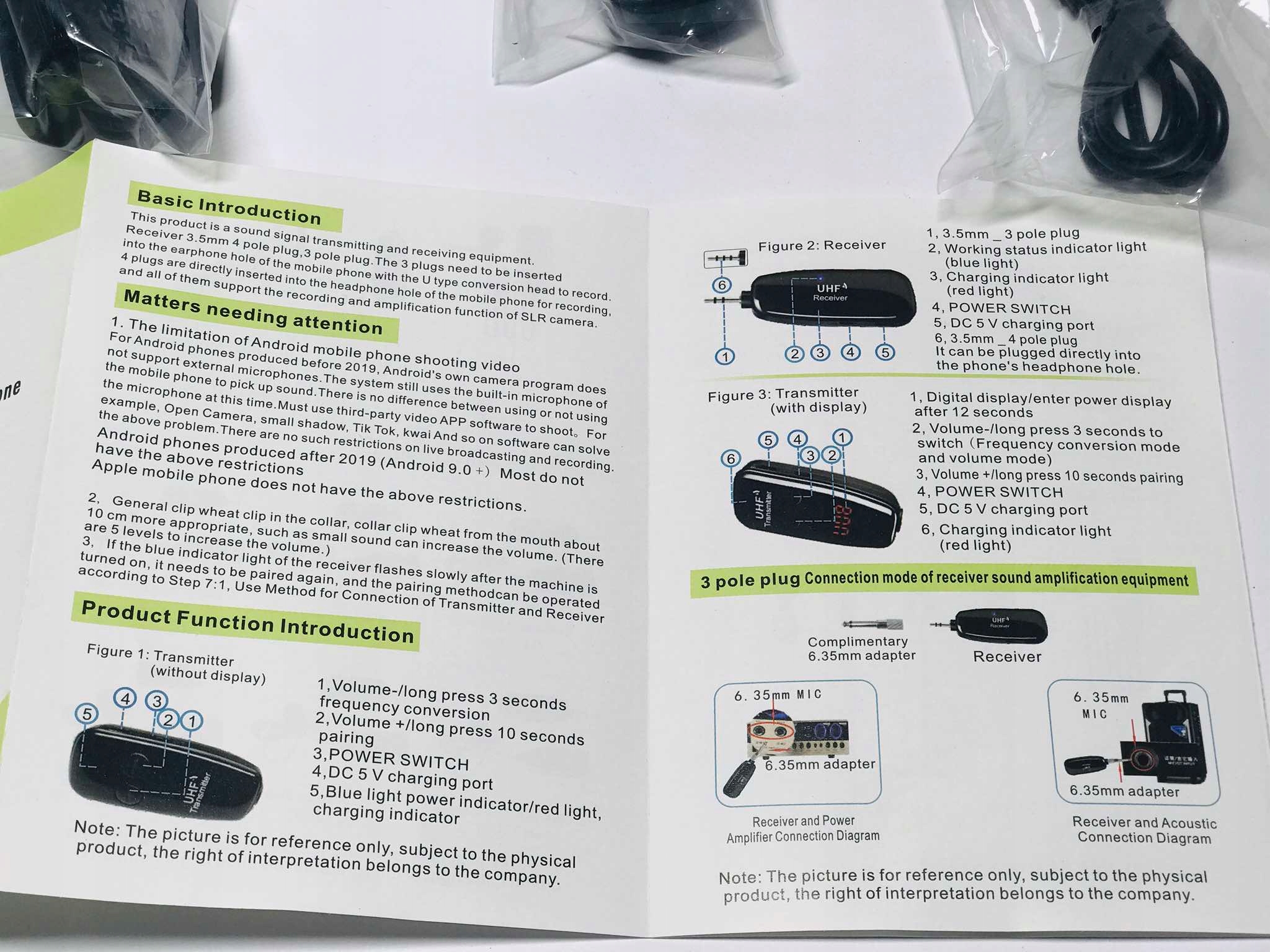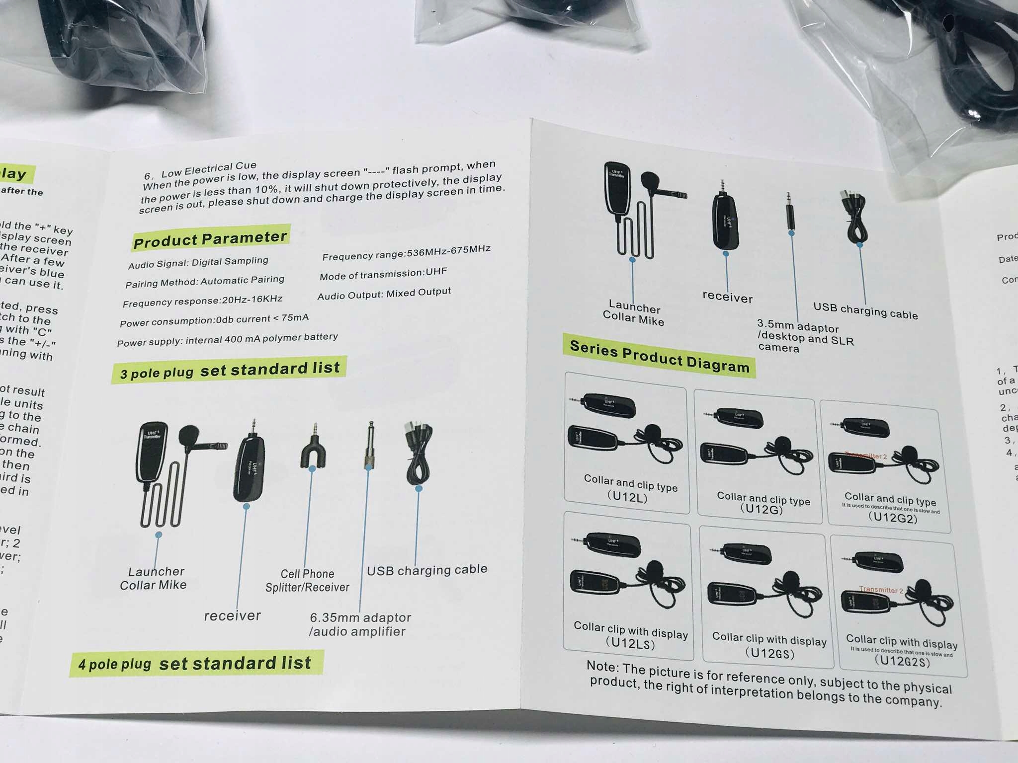 UHF Bezprzewodowy mikrofon z odbiornikiem jack Lavalier
