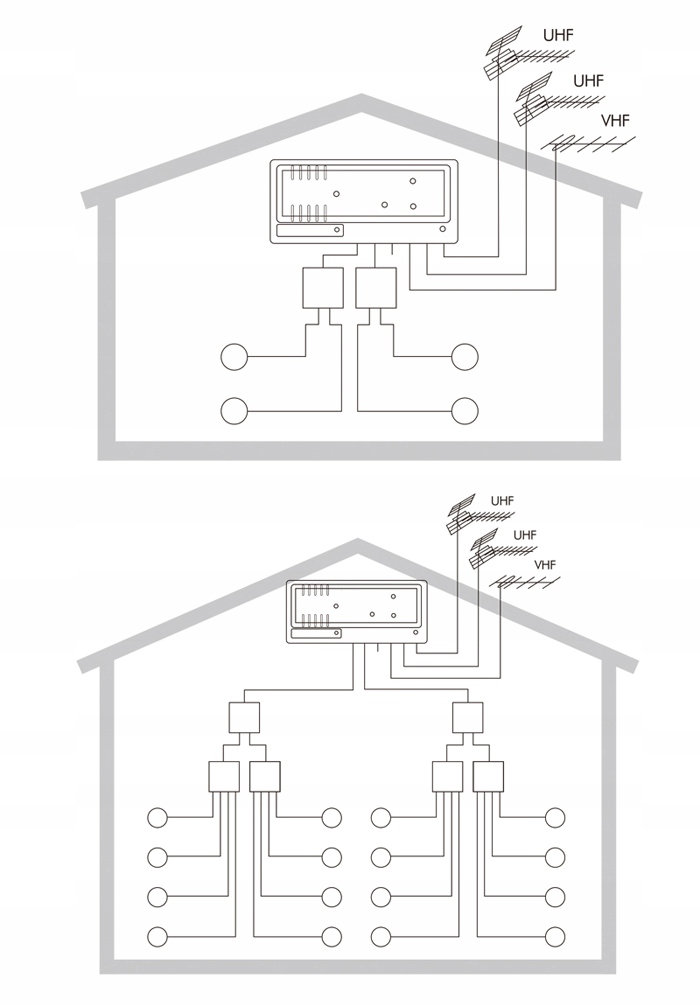 Вхід є широкосмуговим з автоматичним введенням підсилювача на вході UHF1 , у випадку короткого замикання електронне джерело живлення автоматично переривається +24 В.