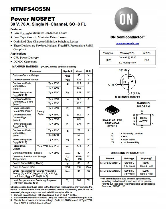 Układ Mosfet ON NTMFS4C55N 4C55N Xbox One S