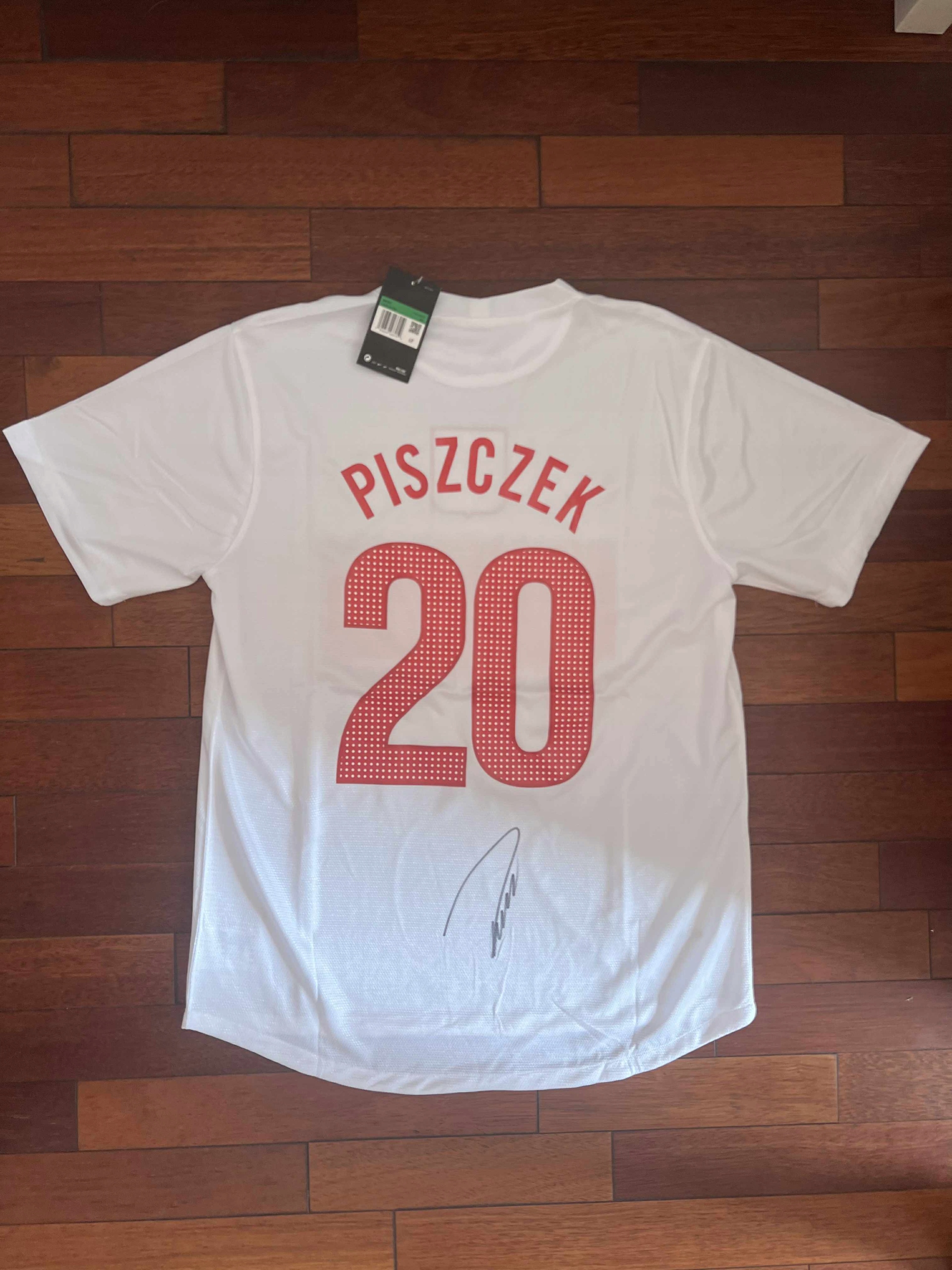 t -сорочка з номером 26 національної збірної польської з автографом Лукаша Пісчека. Унікальна позиція для футбольних фанатів. Включає сертифікат автентичності у вигляді наклейки QR -коду, виданого авторитетною американською компанією.