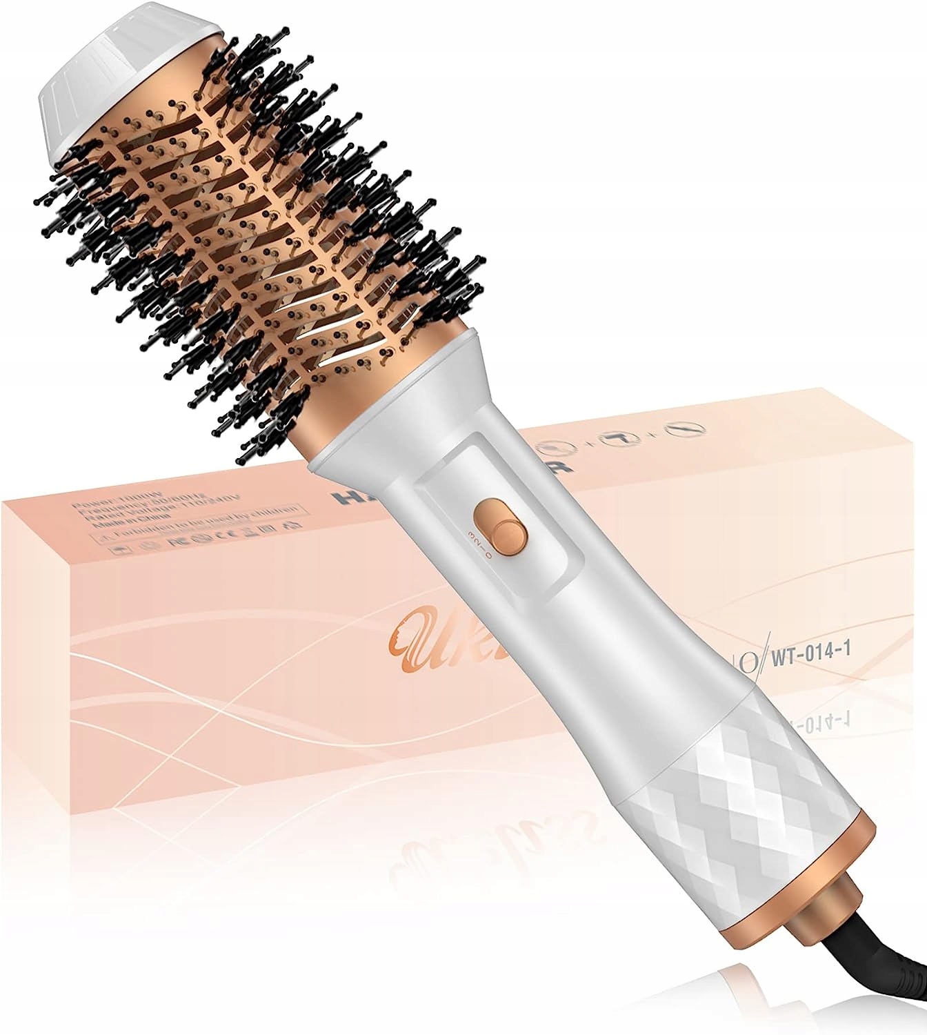 - БАГАТОФУНКЦІОНАЛЬНА ЩІТКА-ФЕН, ЩІТКА ДЛЯ СУШІННЯ В ОДНОМУ: професійний фен 4-в-1 із щіткою-обдувом поєднує в собі функції фена, праски для волосся, плойки та плойка дозволяє швидко укладати, сушити та збільшувати об’єм, випрямляти та завивати волосся. Швидке сушіння потужністю 1000 Вт зменшує термічні пошкодження волосся, а фен-щітка вдвічі скорочує час на укладання. ПРАЦЮЄ ЛИШЕ ДЛЯ НАПРУГИ 110–120 В.