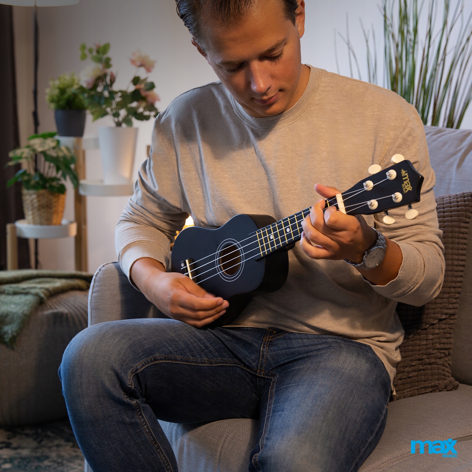 Навчитися грати на гітарі набагато легше, починаючи з укулеле. На відміну від звичайної гітари, укулеле має 4 струни замість 6. Це дозволяє вам швидше підбирати акорди, тож ви швидше навчитеся грати. Розмірами укулеле нагадує дитячу гітару, але зовнішній вигляд може бути оманливим! Укулеле також можна використовувати як гітару для дорослих. Укулеле характеризується радісним звучанням і компактними розмірами. Ви можете легко взяти його з собою, і де б ви не були, вам гарантовано гарну розвагу.