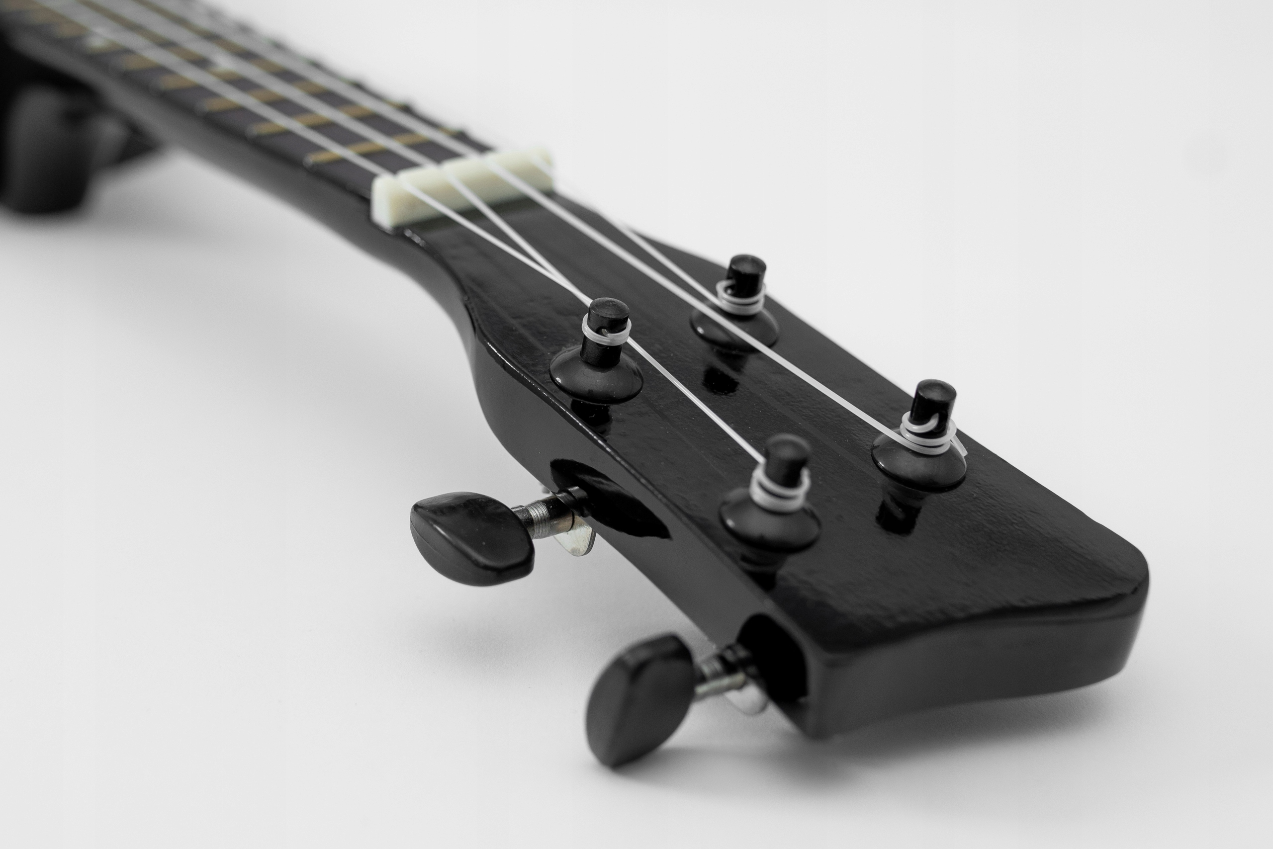 Ukulele sopranowe Czarne Pokrowiec Struny Kostki Stroik Akordy ZESTAW