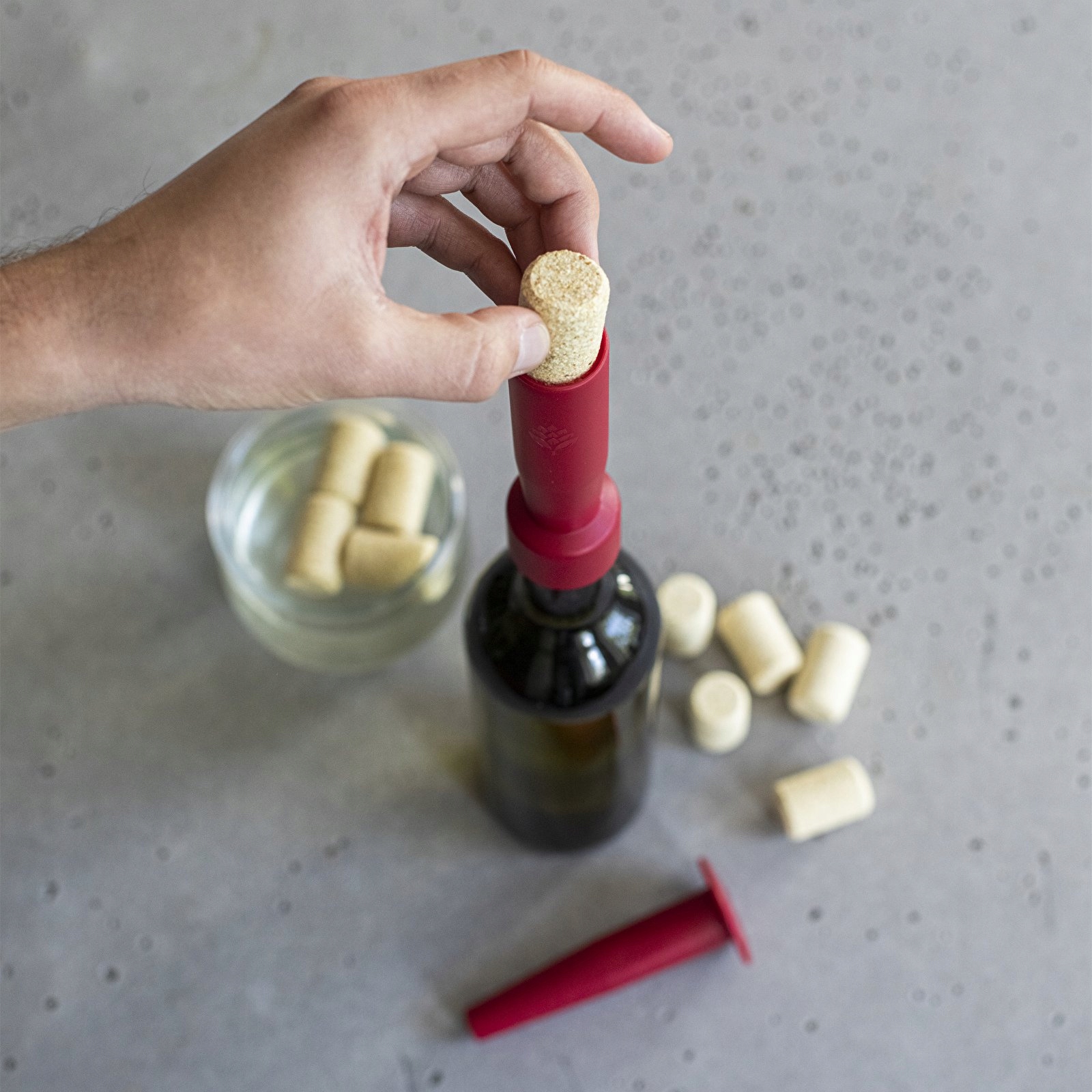 Конічні пробки встановлюють на шийку пляшки, а потім вдавлюють вручну або за допомогою пробки (вибирається з доступних моделей).