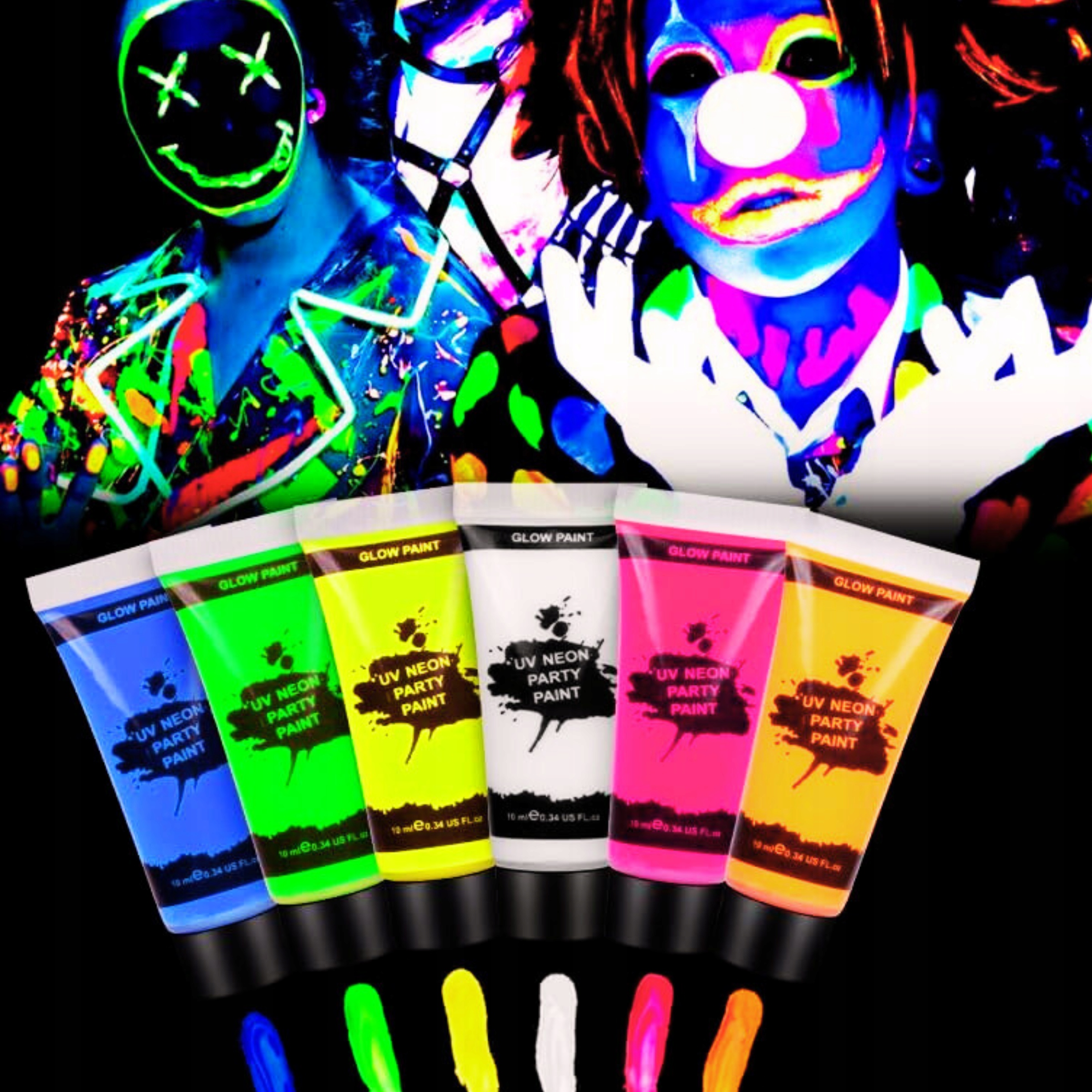 ⭐⭐⭐ люмінесцентні фарби для фарбування обличчя та тіла УФ -сяйво - 6 кольорів