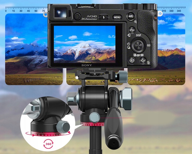 - 360 panoramic шкала градусів полегшує точне позиціонування камери/камери в заданому положенні