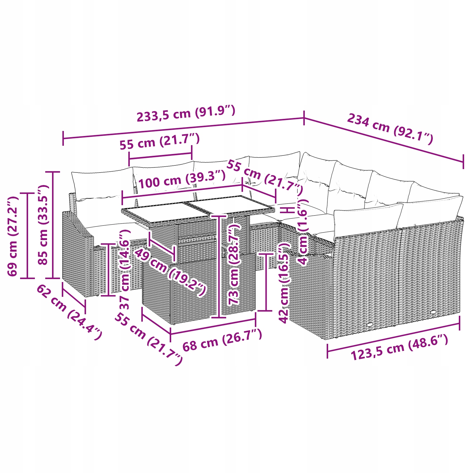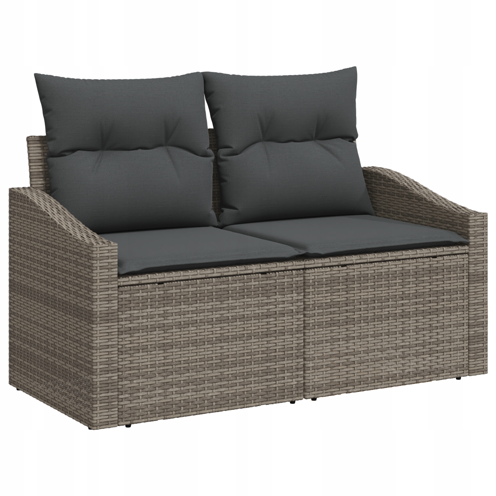 Набір вуличних диванів з ротанга, сірий, 9 предметів, стіл зі скляною стільницею
