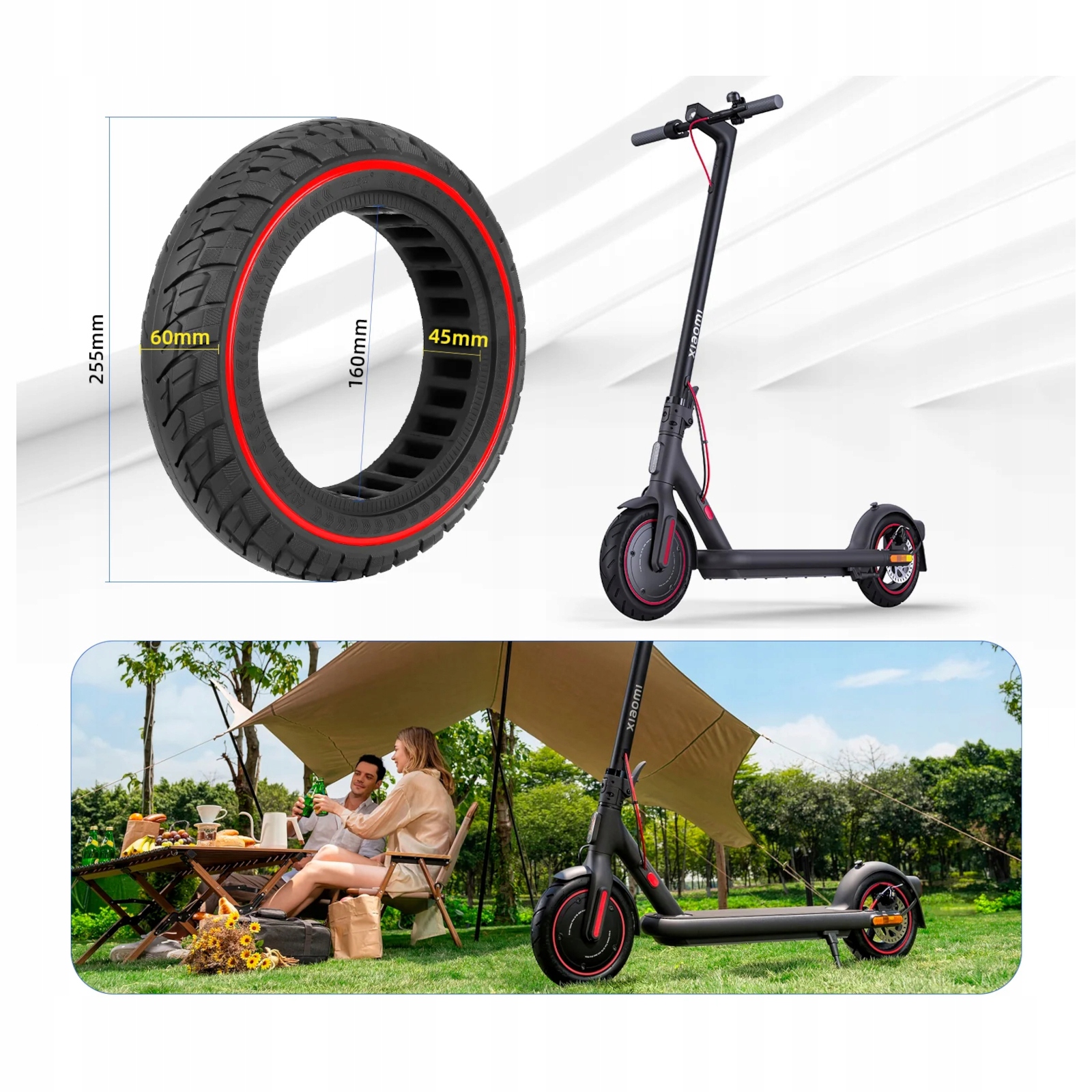 Безкамерна напівтверда шина Ulip була спеціально розроблена для скутерів Xiaomi Electric Scooter 4 Pro. Завдяки внутрішній структурі порожніх камер, шина поглинає їзду по нерівностях набагато краще, ніж інші шини цього типу. Чорна шина з червоною окантовкою надасть вашому скутеру Xiaomi 4 Pro оригінальний вигляд.