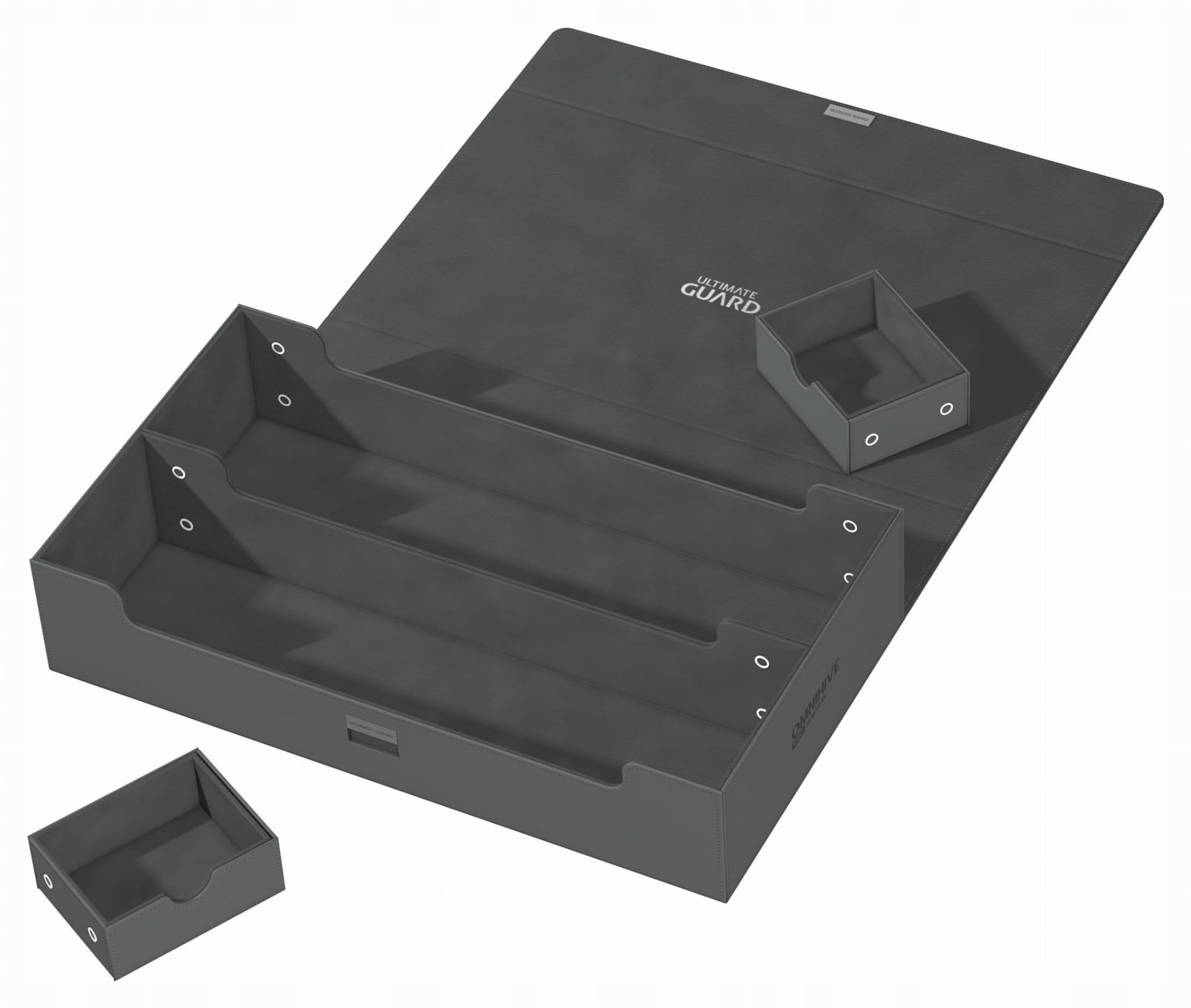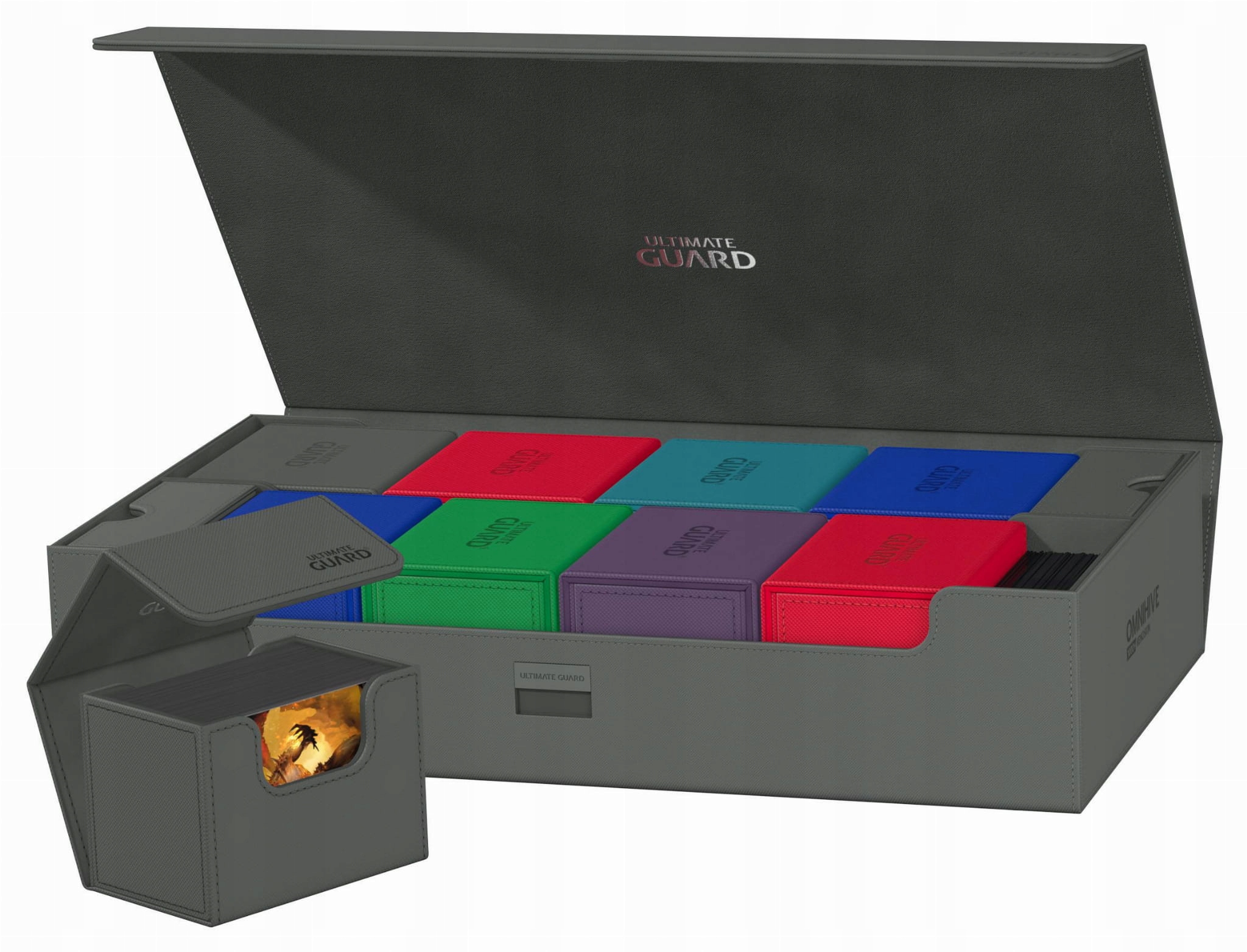 Представляємо новий Omnihive 1000+! Надзвичайно місткий і гнучкий ящик для зберігання великих колекцій. У цю коробку можна вмістити понад 1000 карт із подвійним рукавом або кілька колод та/або ігрових килимків, а також інші продукти Ultimate Guard, такі як Sidewinder 133+. Два знімних магнітних лотка, що регулюються та складаються, роблять цю коробку унікальною: її можна адаптувати для будь-яких ігор і форматів, а також дає змогу зберігати та використовувати вашу колекцію різними способами.