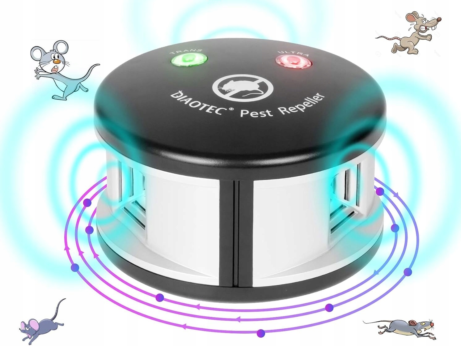 - trans - хвилі тиску для відлякування більших гризунів, наприклад щури та білки. зелений світлодіод