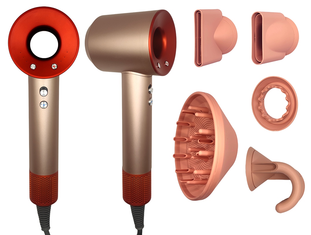 Набір включає 5 різних 360 ° форсунок, встановлених магнітно для догляду за кожним типом зачіски