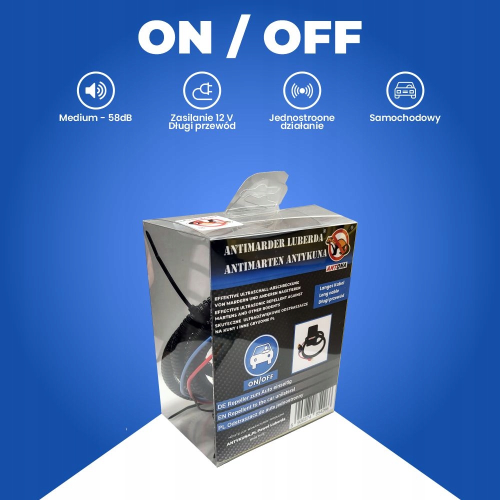 Ultradźwiękowy odstraszacz kun Antykuna ON/OFF 1 stronny z długim przewodem