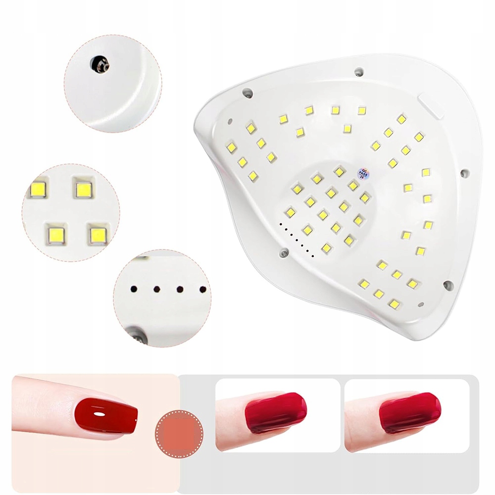 💎duża przestrzeń do utwardzania 5 paznokci jednocześnie: wystarczajco duża przestrzeń w suszarce do paznokci pozwala na utwardzanie 5 paznokci jednocześnie. Бісер світлодіодних/ультрафіолетових ліхтарів з ємністю 150 Вт пропонують унікальні властивості, швидкі, дуже енергетичні та довговічні конструкції, вирішили лампу для нігтів інтелектуальним та дружнім.
