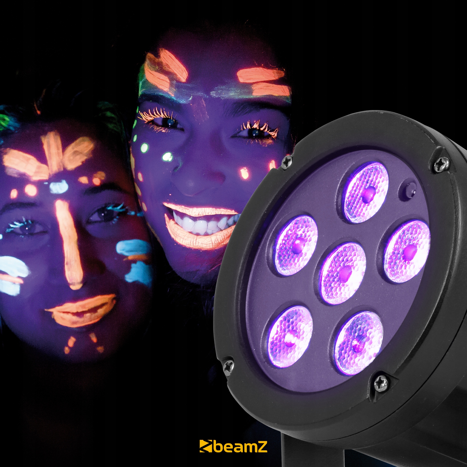 Надає неперевершену потужність ультрафіолетового світла на ваші події та виступи. Оснащений шістьма світлодіодами потужністю 3 Вт кожен, в режимі 3-в-1, цей продукт гарантує інтенсивні світлові ефекти в ультрафіолетовому діапазоні. Його універсальні можливості та легке керування роблять його незамінним інструментом для професійних мобільних діджеїв, сценічних артистів і всіх видів мобільних заходів.