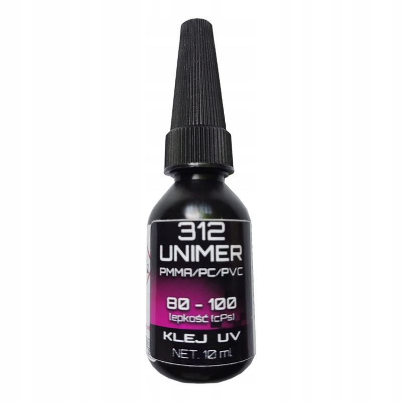 - UV UniMer 312 10ml x 1 елемент uniMer 312 клей був розроблений для максимальної ефективності в поєднанні прозорих та непрозорих пластмас, таких як PMMA (Pleksi), ПК (полікарбонат) та PVC. його рідкісна послідовність та висока прозорість після затвердіння роблять його незамінним у додатках, що вимагають естетики, точності та довговічності. Він заповнює прогалини до 0,3 мм і характеризується високим рівнем капіляра. Клей UniMer 312 після затвердіння не залишає бульбашки повітря на зваренні до 20 мм.