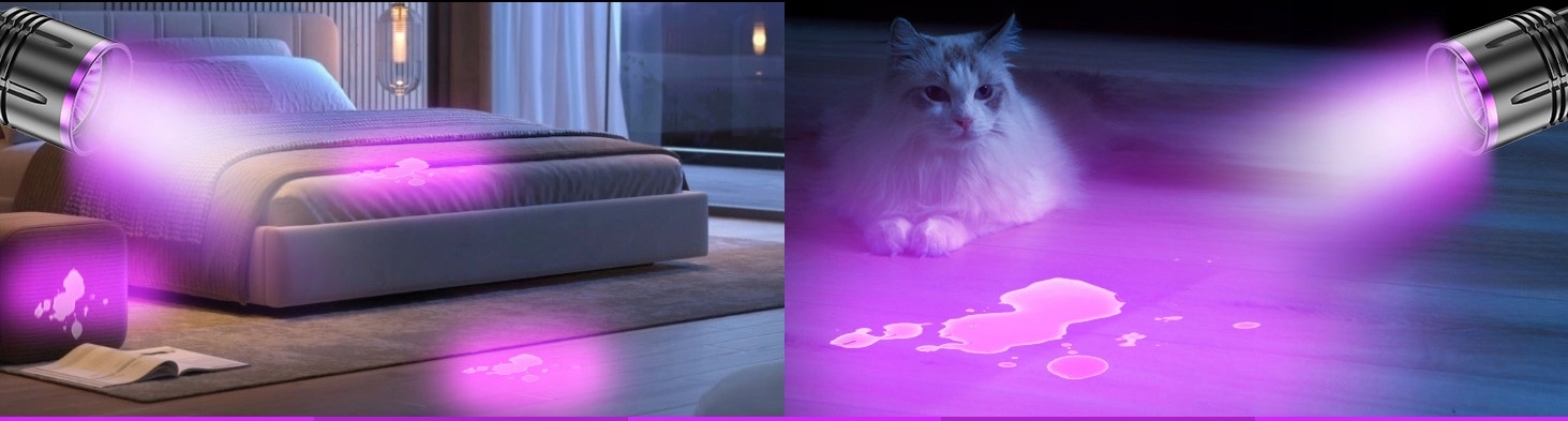 Use UV flashlight: deep cleaning (checking bedding or carpets, detection of urine stains of pets)