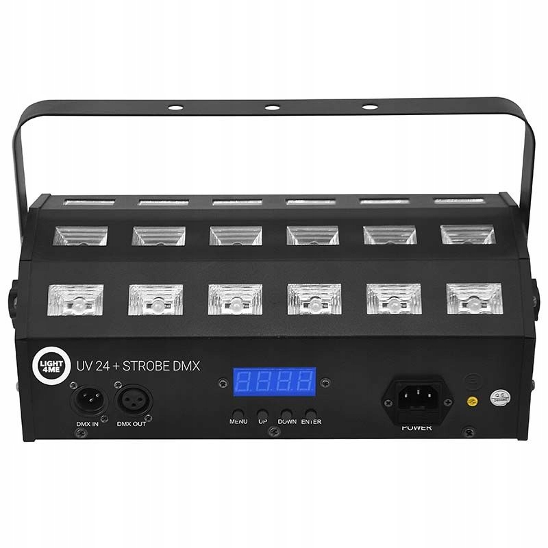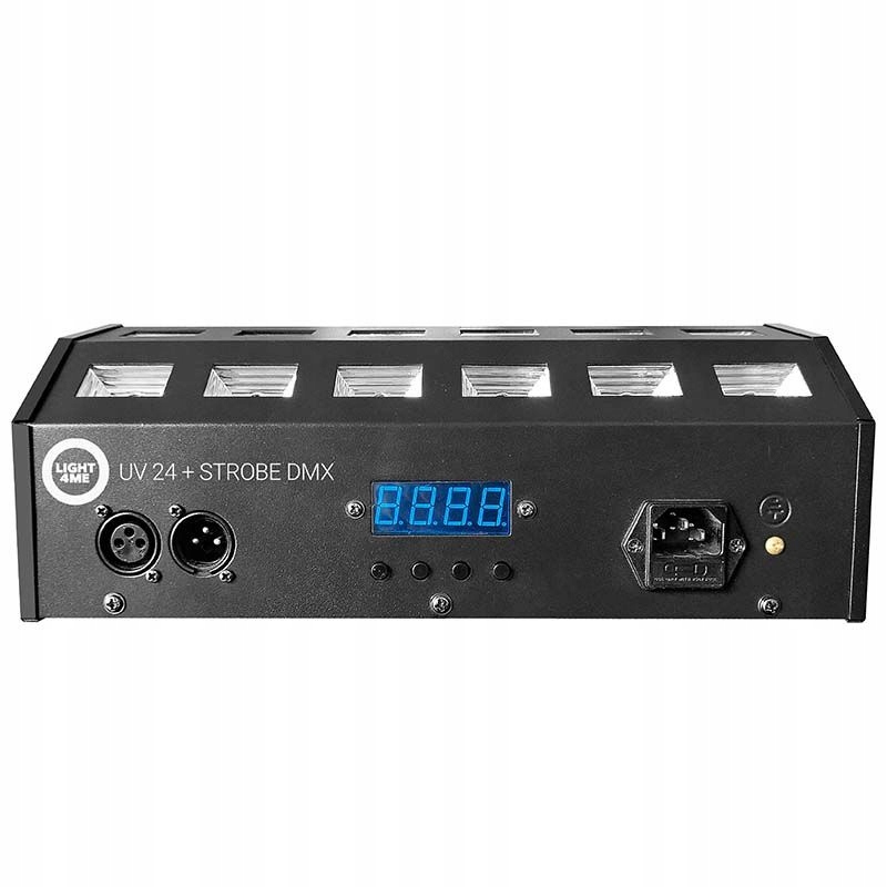 LIGHT4ME UV 24 + STROBE DMX — це професійний сценічний ультрафіолетовий прожектор із функцією стробоскопа, оснащений 24 потужними світлодіодами потужністю 3 Вт, що працюють з ультрафіолетовим світлом і білим спалахом. Пристрій відмінно справляється зі своїм призначенням в танцювальних клубах, дискотеках та інших освітлювальних установках, в яких ультрафіолет створює ефект світіння певних кольорів.