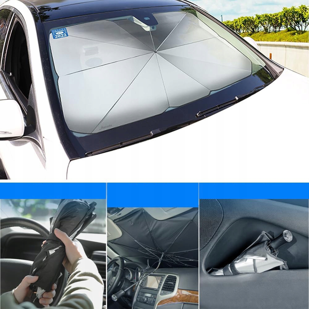 - парасолька складається за кілька секунд і зберігається в прикріпленому шкіряному корпусі, що полегшує перенесення. Тільки для пасажирських автомобілів та позашляховиків (не підходять для великих вантажних автомобілів/фургонів, перш ніж купувати, вам слід виміряти транспортний засіб, щоб переконатися, що він підходить).