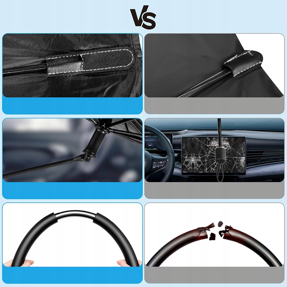 ➡ Ефективний захист: зменшує нагрівання внутрішнього автомобіля, захист оббивки та електроніки. Механізм парасольки: легке і швидке складання та складання.