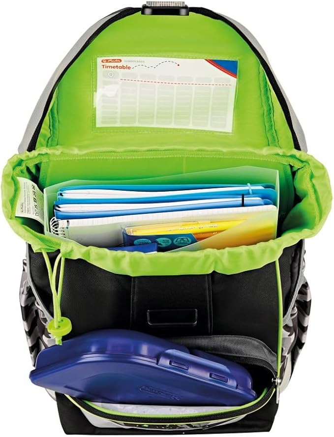 Шкільний ранець Herlitz UltraLight — надзвичайно легка модель, вагою близько 800 грам. Він оснащений великим основним відділенням із внутрішньою перегородкою, яка організовує його простір, а завдяки м’якому корпусу, що закривається на шнурок, ранець забезпечує швидке регулювання об’єму.